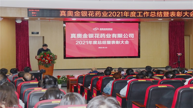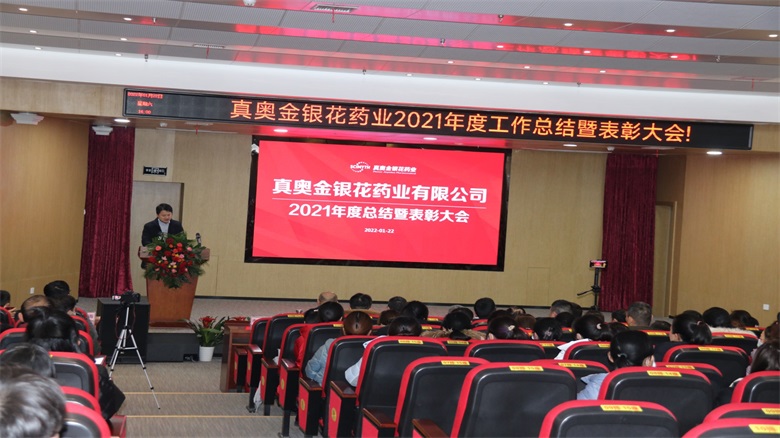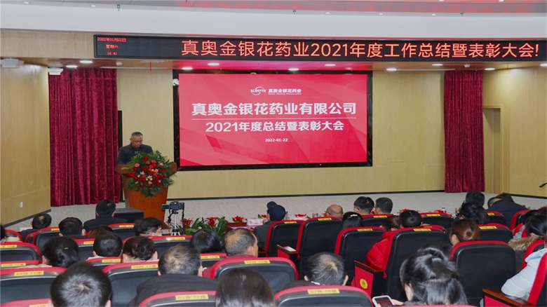 真奥金银花药业有限公司2021年度工作总结暨表彰大会在行政楼三楼会议室隆重举行。公司全体职工参会。