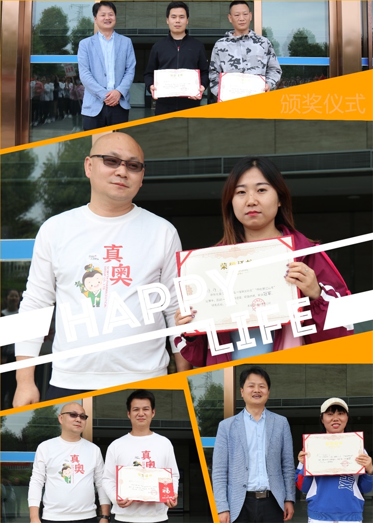 本次趣味运动会共设置4个比赛项目:拔河、背靠背夹皮球、呼啦圈过山车、袋鼠跳。来自真奥各部门共6支队伍参加了本次运动会。经过4个小时的激烈角逐,生产一部队包揽拔河比赛以及背靠背夹皮球比赛冠军,神锋队获得呼啦圈过山车比赛冠军,团结一心队获得袋鼠跳比赛冠军。赛后,举行了颁奖仪式。公司领导分别为各获胜队伍颁发荣誉证书、分发奖金。