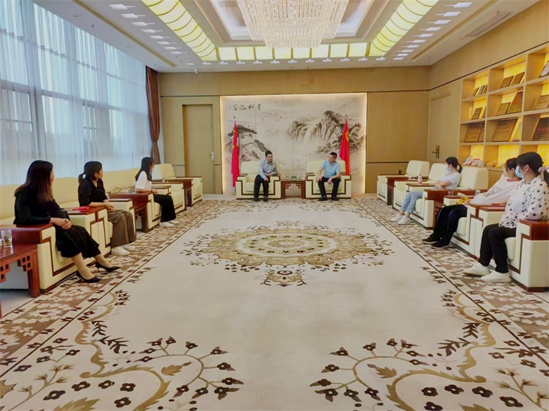 随后,一行人在三楼会客厅进行座谈会。会上,通过一个简短的宣传视频,第一人民医院各位领导对我公司基本情况及医药项目有了进一步了解。公司领导向大家介绍了企业概况,并分享了企业在科研建设等方面的发展情况。周主任对公司的产品给予充分肯定,对公司为医疗工作提供的支持保障给予积极评价,希望有机会能继续加强交流与合作。与会人员也结合自身工作进行了互动交流。