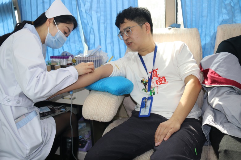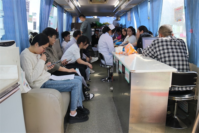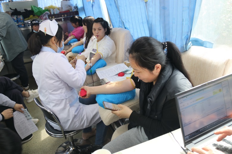 活动现场,血液中心医生为献血活动作现场指导。大家依次进行健康征询、信息登记、体格检查、血液初筛等环节,符合献血条件的员工按顺序走上献血车,进行无偿献血。工作人员为大家准备了水果、点心和牛奶等食品,及时为献血人员补充能量。